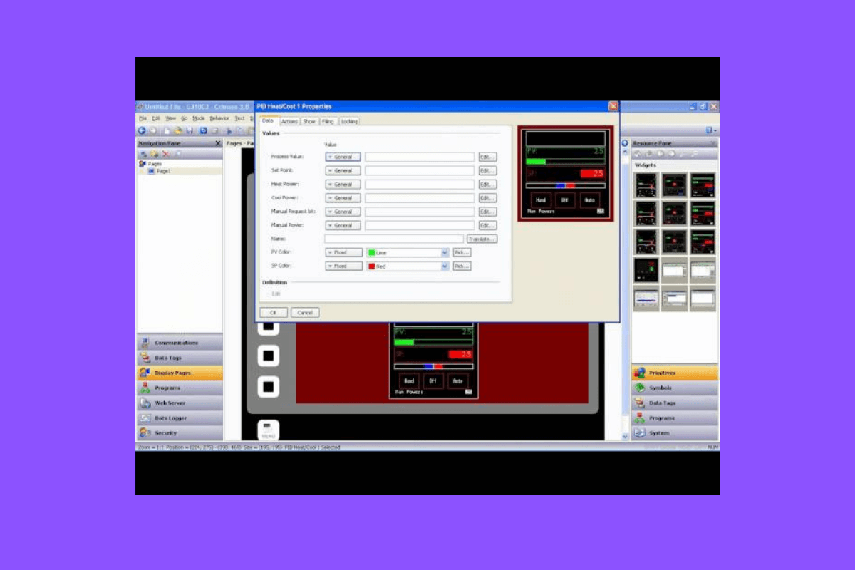 Crimson has emerged as a specialized programming platform within the Red Lion ecosystem. It boasts a robust set of tools, including drag-and-drop configuration and sophisticated data management instruments tailored for "G3, G3 Kadet, and Graphite® HMI operator panels, Graphite Edge, and Core Controllers" development. Designed to synergize seamlessly with the suite of Red Lion solutions, Crimson streamlines the development process for specialized hardware interfaces.